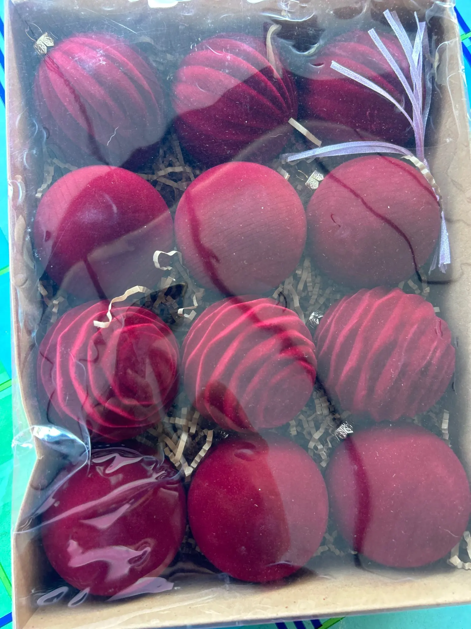 Velvet Flocked Christmas Ornaments – 12-Piece Elegant Tree Ball Set