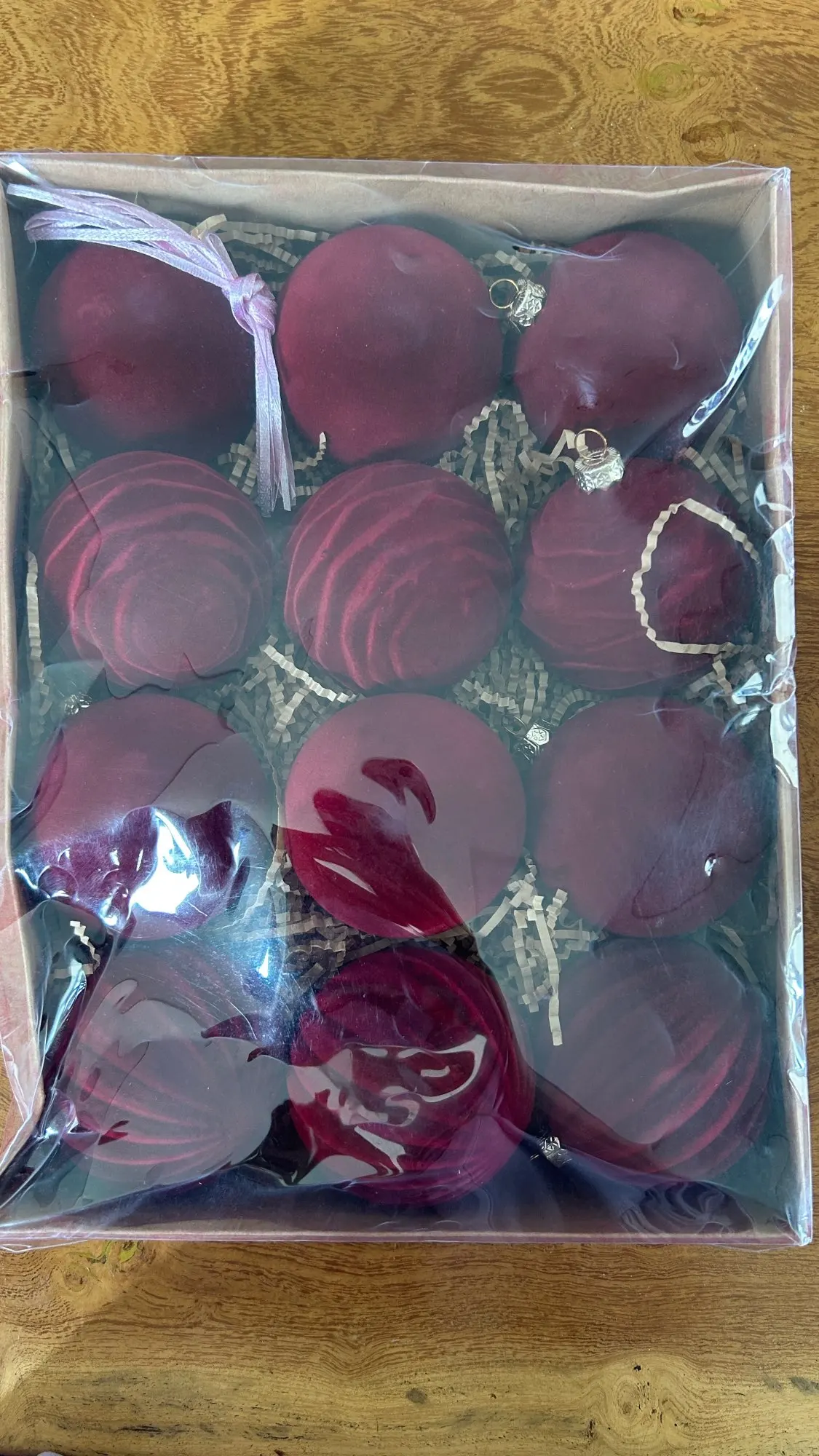 Add a touch of elegance to your Christmas décor with this set of 12 velvet Christmas balls. The rich, soft flocked finish gives each ornament a sophisticated, high-end look that enhances the beauty of any tree or holiday setting.